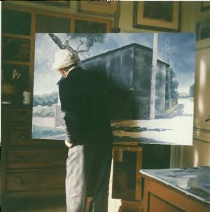 Così le case solitarie, prive di finestre e di vita al loro interno, moderne fortezze dai volumi imponenti e dai colori ghiacciati dal tempo che dipingeva nei suoi quadri, cercavano, da una parte, di rievocare un mondo perduto e nostalgicamente rimpianto e dall’altra di lasciare testimonianza di una bellezza che stava anche in semplici case di contadini delle nostre campagne, la bellezza della semplicità antica prodotta da uomini per gli uomini.